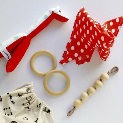 En todas los combinados está presente el clásico objeto que caracteriza a PINTITAS juguetes, el PAÑUELO, que acompaña el juego libre y espontáneo del bebé. El juguete clásico de la pedagogía PIKLER.