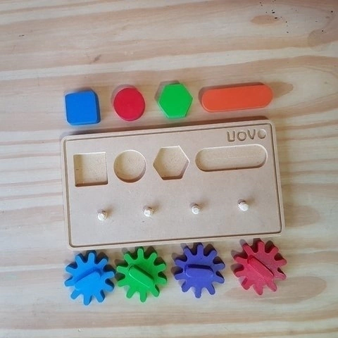 Incluye: - 1 Tabla - 4 Figuras geométricas- 4 figuras engranaje